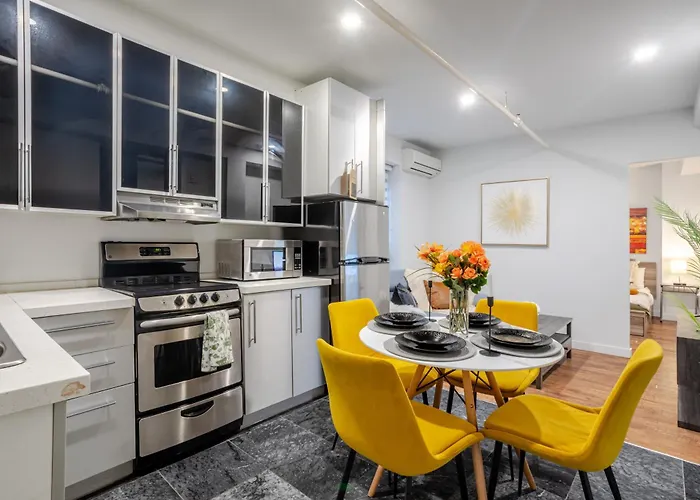 La résidence est à environ 3 km de L'Oratoire Saint-Joseph du Mont-Royal et à 2 km du Centre des sciences de Montréal. Charming 1Bdr Apartment On Bishop St- Mtl est situé à 300 mètres de la Rue Crescent et assez proche de la station de métro Guy-Concordia. Le logement à coucher se trouve à environ 25 minutes de marche de la place Émilie-Gamelin.